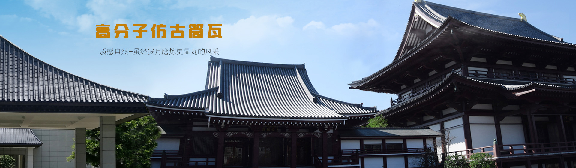 公司采用高分子材料高溫高壓模具成型的裝飾屋面瓦系列:仿古瓦、筒瓦、小青瓦、琉璃瓦、西式瓦等,集防水、隔熱、裝飾功能于一體。強(qiáng)度高、重量輕,安裝簡(jiǎn)便快捷,不需要做防水層。耐候性好,使用壽命長(zhǎng)、終身不漏水、不維修,徹底克服了傳統(tǒng)燒結(jié)瓦易松動(dòng)、裂紋而滲漏的缺陷,是現(xiàn)代中高端建筑理想的用瓦選擇。